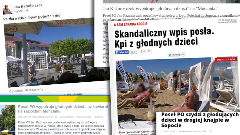 Hasło “Polska w ruinie” pojawiło się po raz pierwszy w kampanii prezydenckiej Andrzeja Dudy. Opozycja w ostatnich tygodniach często podnosiła też problem niedożywionych dzieci, operując liczbą 800 tysięcy najmłodszych. Wypoczywający na wakacjach poseł rządzącej partii, w Sopocie nie widział ani ruin, ani głodnych dzieci. Zaprezentował za to fotografię z jednej z najbardziej ekskluzywnych alei spacerowych w Polsce. To było wodą na młyn dla bulwarówek i portali społecznościowych. “Popis arogancji posła PO”, “Kpi z głodnych dzieci” – to tylko niektóre z tabloidowych tytułów. Zawrzało też wśród internautów.