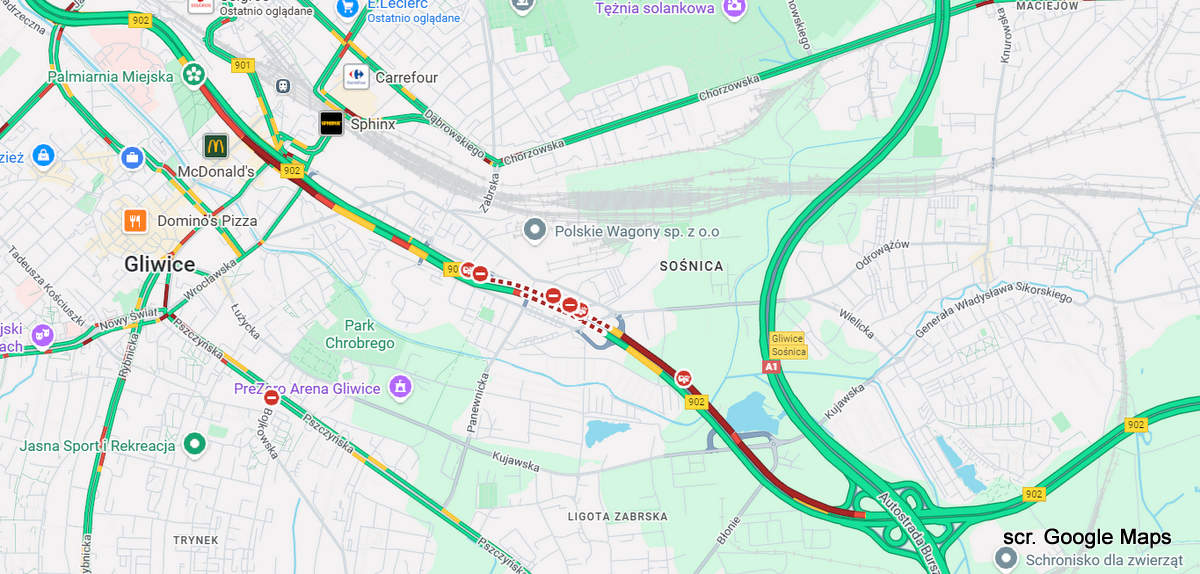 Jak informuje jeden z Czytelników, ruch na DTŚ w kierunku Zabrza został odblokowany. W drugą stronę zator drogowy ciągnie się aż do węzła z autostradą A1.