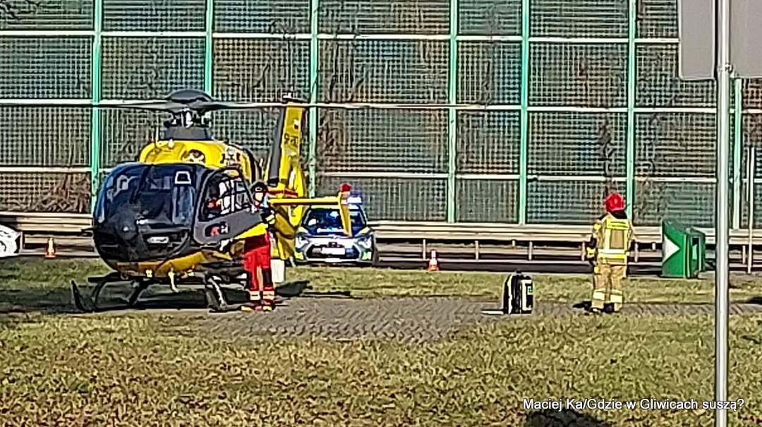 Na DTŚ w Gliwicach, na wysokości ulicy Robotniczej doszło do poważnego wypadku z udziałem jednego pojazdu – internauci informują w mediach społecznościowych, że była to Tesla. Na miejsce wezwano śmigłowiec LPR, który lądował w rejonie zjazdu na Średnicówkę z ul. Baildona.
