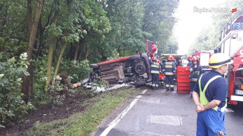 W sobotę, 14 lipca około godziny 6:30 kierujący dostawczym mercedesem 60-latek, wyjeżdżając z ulicy Przyszowskiej w Łabędach, wymusił pierwszeństwo przejazdu na poruszającym się ul. Toszecką w kierunku Pyskowic 42-latku, jadącym fiatem doblo.
