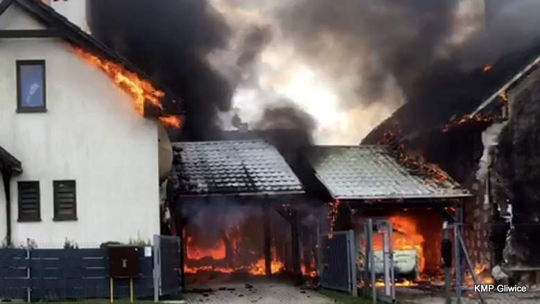 – Dyżurny przyjął zgłoszenie, z którego wynikało, że w miejscowości doszło do pożaru domu jednorodzinnego. Z kolejnych zgłoszeń wynikało, że pożar rozprzestrzenił się na budynek znajdujący się obok. Przybyły na miejsce pierwszy dowódca potwierdził zgłoszenie i sprecyzował rozmiar zdarzenia – wszyscy mieszkańcy opuścili budynek i nie odnieśli obrażeń, ogniem objęte były elewacje i połacie dachowe dwóch budynków mieszkalnych, z kolei między budynkami pożarem objęte były dwie wiaty wraz z dwoma samochodami – relacjonuje gliwicka Komenda Straży Pożarnej.
