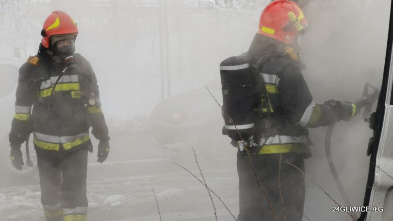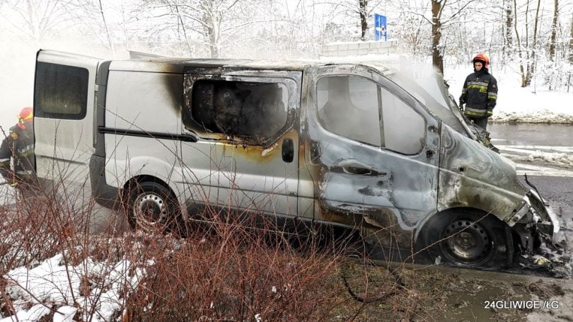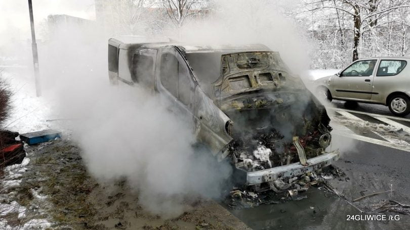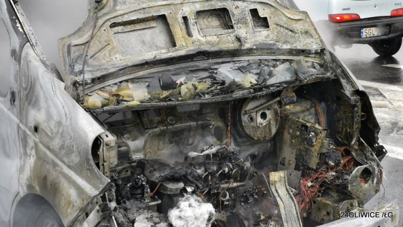 Pożar rozpoczął się w przedniej części pojazdu marki renault traffic, najprawdopodobniej w rejonie silnika. Na miejsce wysłano 2 zastępy straży pożarnej.