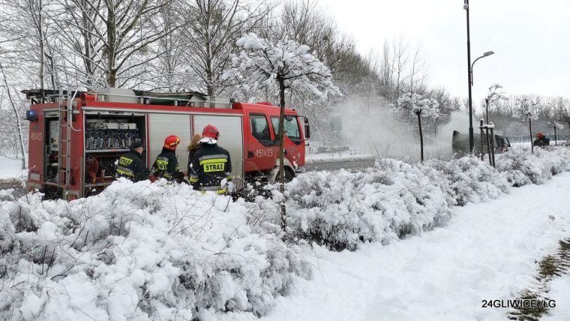 Podczas gaszenia samochodu doszło do zapalenia paliwa, które rozlane było na jezdni. Trwa usuwanie skutków zdarzenia. Utrudnienia dla kierujących mogą potrwać jeszcze pewien czas.