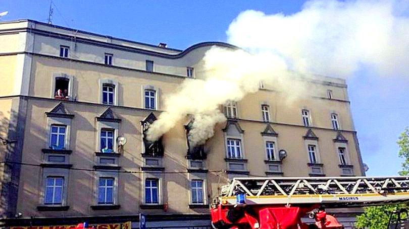 Pożar, z nieustalonych jeszcze przyczyn, wybuchł w kawalerce w kamienicy. Mieszkanie znajdowało się na 2 piętrze. Całkowitemu spaleniu uległ pokój wraz z kuchnią. Przebywający tam 65-letni mężczyzna doznał licznych oparzeń.