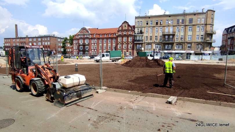 Od momentu przekazania placu budowy wykonawcy, Przedsiębiorstwu Remontów Ulic i Mostów, które zlecenie to realizuje za około 3,9 mln złotych, usunięte zostały obiekty małej architektury (a wcześniej jeszcze do innych miejsc w Gliwicach przesadzono rosnące w donicach drzewa), teren ogrodzono, następnie rozpoczęto prace ziemne.