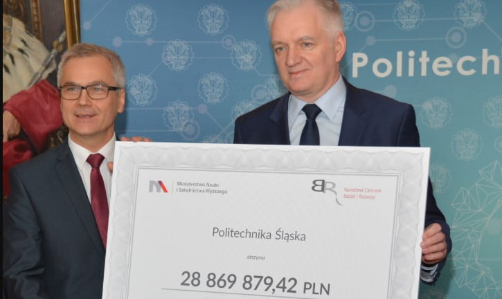 Symboliczny czek na niemal 29 mln zł dla Politechniki Śląskiej na unowocześnienie kształcenia odebrał w piątek na gliwickiej uczelni z rąk wicepremiera, ministra nauki i szkolnictwa wyższego Jarosława Gowina rektor prof. Arkadiusz Mężyk.