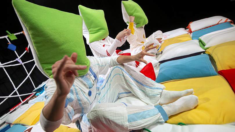 – Naszą przestrzeń tworzy abstrakcyjna konstrukcja z poduszek – wielkie kolorowe łóżko, które służy do skakania, wylegiwania się na nim, odkrywania i rozbudzania wyobraźni do nowych przygód. Odkrywamy kolor za kolorem. Poduszkę za poduszką. Niczym w wielkim, miękkim laboratorium zabawy. A pod każdą poduszką jest sekret – mówi Daniel Arbaczewski.