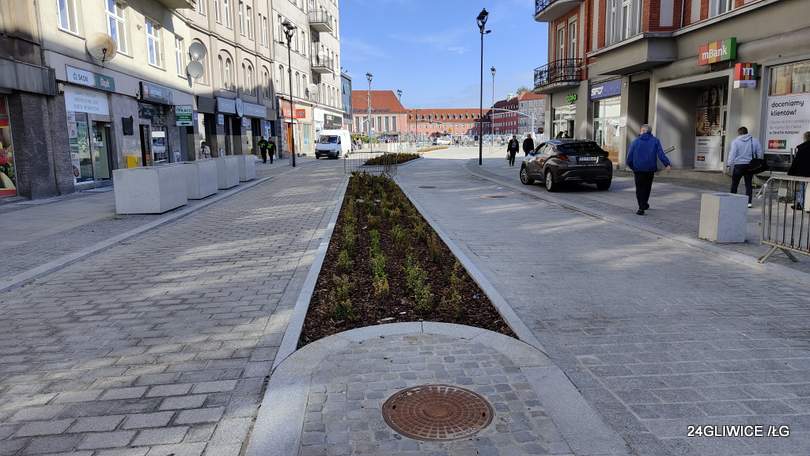 Na niemal gotowym odcinku ulicy Zwycięstwa ustawiono donice pod przyszłe nasadzenia – glediczje trójcierniowe odmiany „Sunburst” o złotożółtej, ażurowej koronie, w otoczeniu jałowców płożących „Wiltonii” z szaro-niebieskimi igłami nabierającymi zimą lekko fioletowej barwy, a także róż odmiany „Short Truck” o różowych kwiatach.