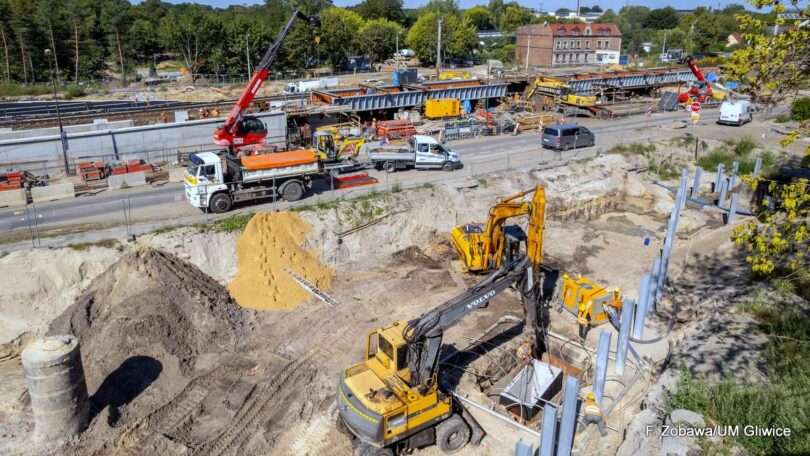 Realizacja tego dużego przedsięwzięcia rozpoczęła się jeszcze w 2024 roku od robót związanych m.in. z przekładaniem i przebudową sieci podziemnego uzbrojenia. Było to konieczne, bo miejscowo teren musi zostać obniżony nawet o 4 metry. Nowy wiadukt kolejowy będzie znajdował się na obecnym poziomie torowiska, a pod nim powstanie kluczowe dla układu drogowego rondo turbinowe, które zbierze ruch z ulic Staromiejskiej, Przyszowskiej, Strzelców Bytomskich i Głównej. Aby je zbudować, konieczne jest zrobienie wykopu.