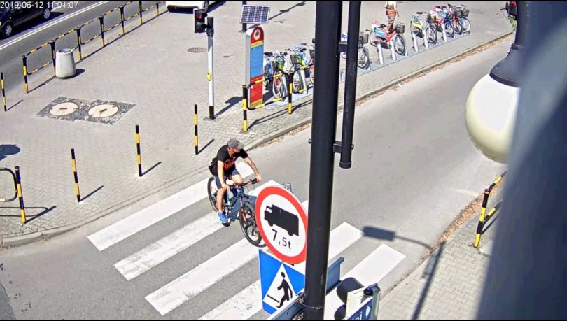 Do zdarzenia doszło 12 czerwca. Skradziono wówczas rower górski marki “Scott” o nr ramy FMAS70522383. Mężczyzna, którego widać na zdjęciach, pokonał rowerowe zabezpieczenie (w postaci linki) i odjechał.