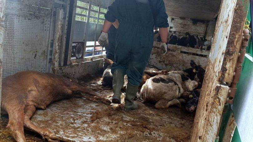 Kondycja zwierząt okazała się na tyle zła, że na miejsce kontroli wezwano Powiatowego Lekarza Weterynarii z Gliwic. Wspólne oględziny wnętrza pojazdów ujawniły trzy padłe cielaki na górnych pokładach w obu naczepach. Ponadto jedno ze zwierząt miało uwięzioną nogę w przestrzeni pomiędzy pokładem a ścianą boczną, co wskazuje, że pojazd nie był w pełni przystosowany do przewozu młodego bydła.