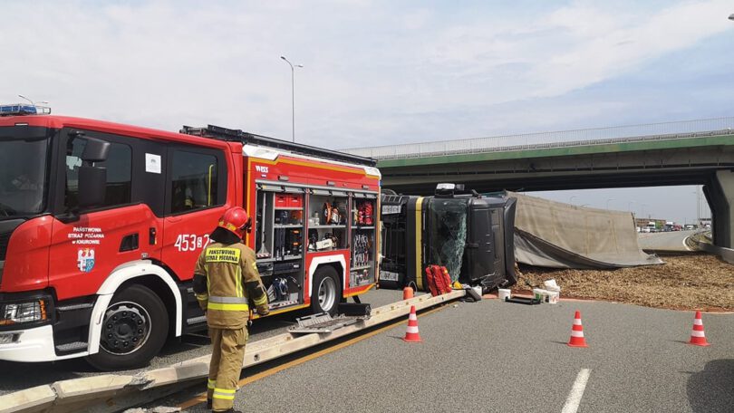 Na autostradzie A1 doszło do zdarzenia drogowego, wskutek którego przez kilka godzin droga była zablokowana. Tir uderzył w barierki, a potem przewrócił się na bok na pas rozdziału kierunków.