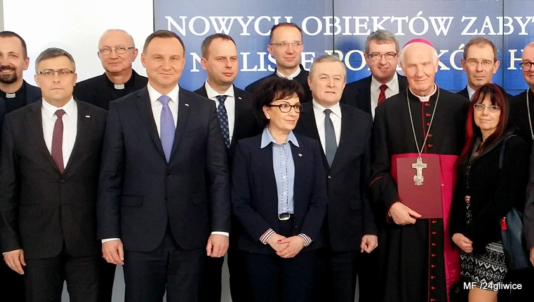 W uroczystym przekazaniu dokumentów z rąk prezydenta RP Andrzeja Dudy brał udział prezydent Gliwic Zygmunt Frankiewicz, miejska konserwator zabytków Ewa Pokorska-Ożóg, dyrektor Muzeum Grzegorz Krawczyk. Obecny był też m.in. wojewoda śląski Jarosław Wieczorek (były radny Rady Miasta Gliwice). Jedynym przedstawicielem gliwickich mediów uczestniczącym w uroczystości w Pałacu Prezydenckim była redakcja 24gliwice.