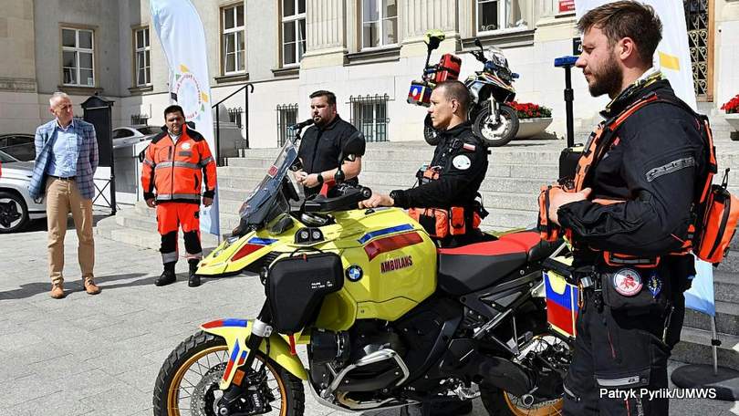 Nowoczesny motocykl to BMW R1300GS. Na jego wyposażeniu znajdują się dwa kufry boczne, kufer centralny, trzy torby medyczne, sygnały świetlno-dźwiękowe i sprzęt medyczny niezbędny do ratowania zdrowia i życia. Na co dzień będzie pomagał m.in. w przypadku nagłego zatrzymania krążenia, zawału serca, udaru mózgu i ciężkich urazów.