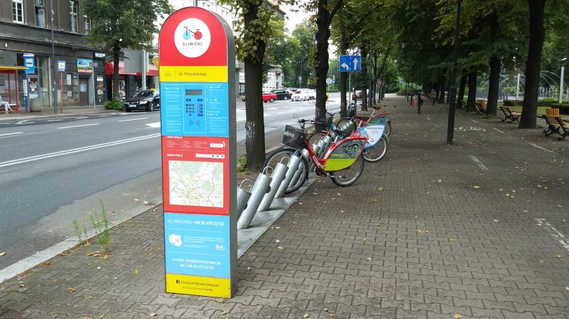 Stacje, w których na terenie Gliwic można wypożyczyć i oddać rower miejski, znajdują się: