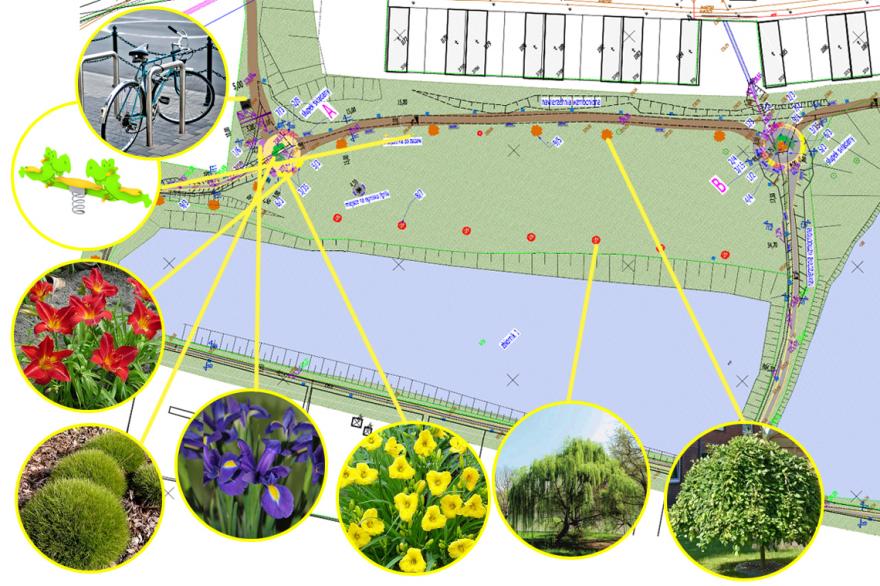 Wokół zbiornika pojawią się wierzby, przy rondach liliowce, irysy, kostrzewy, rajgrasy i rozplenice. Pojawią się też lampy solarno-wiatrowe, kosze na śmieci, małe urządzenia zabawowe – karuzela oraz kiwaki w kształcie tuby i smoka. Obecnie wykonywane są alejki przy drugim zbiorniku. Tuż przed zakończeniem inwestycji rozpocznie się rekultywacja trawników.