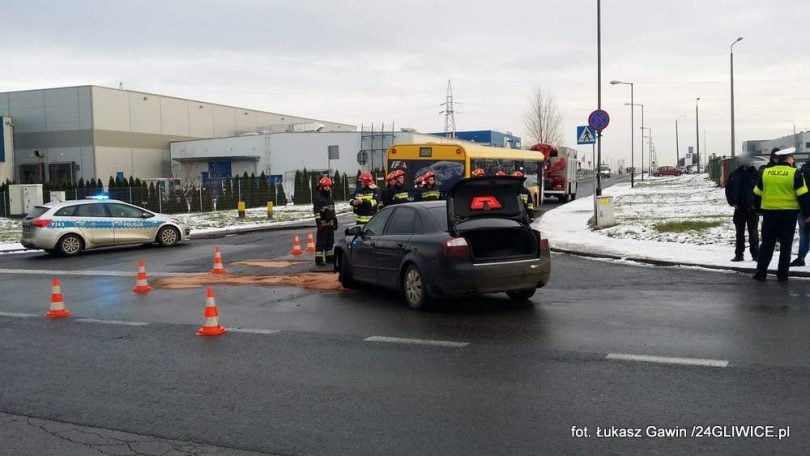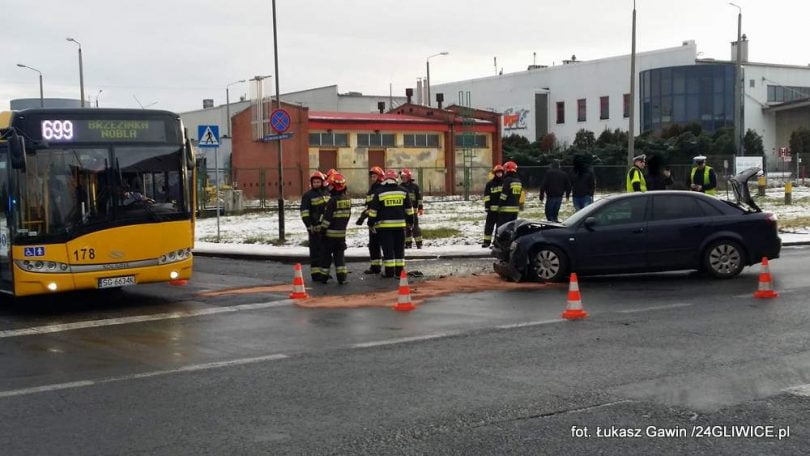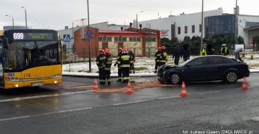 Do potencjalnie groźnego w skutkach zdarzenia doszło w środę około godziny 14:00. W autobus linii 259 wjechało audi, którym podróżowało dwóch młodych mężczyzn.