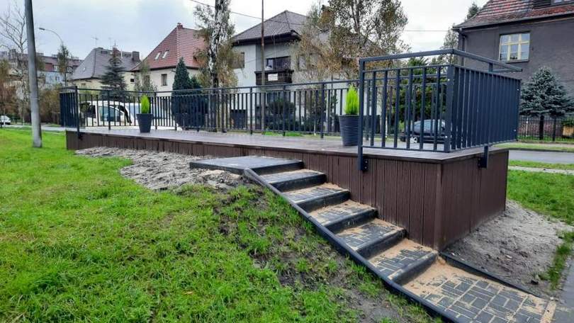 W ramach prac skuto tynki, wykonano podmurówki i wzmocnienia ścian zewnętrznych, zamontowano taras z desek kompozytowych i solidną balustradę. Taras ozdobiły tuje, które docelowo osiągną 70 cm wysokości. Inwestycja kosztowała ponad 61 tys. zł.