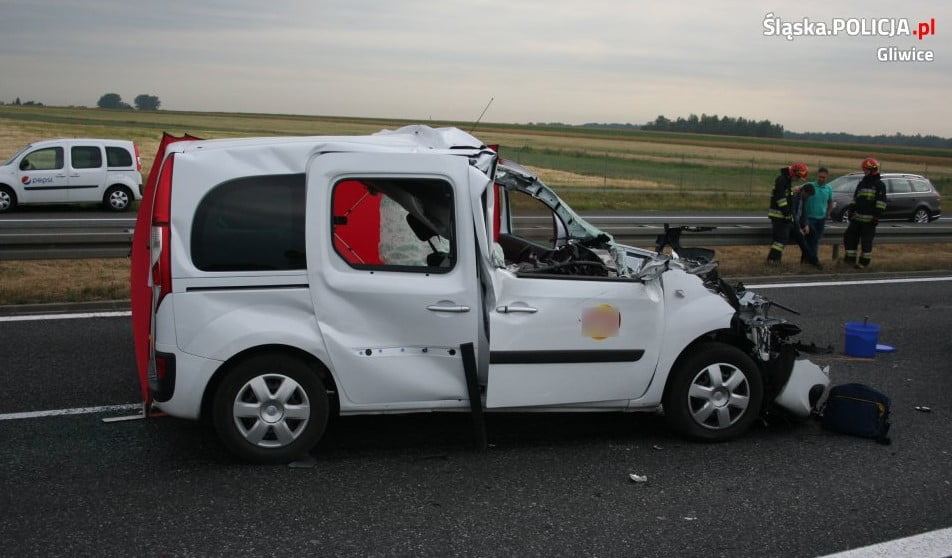 Pomiędzy Ostropą a zjazdem przy ul. Rybnickiej w Gliwicach, na 306 km autostrady w kierunku Katowic, kierowca samochodu renault podczas wyprzedzania zjechał na drugi pas jezdni.