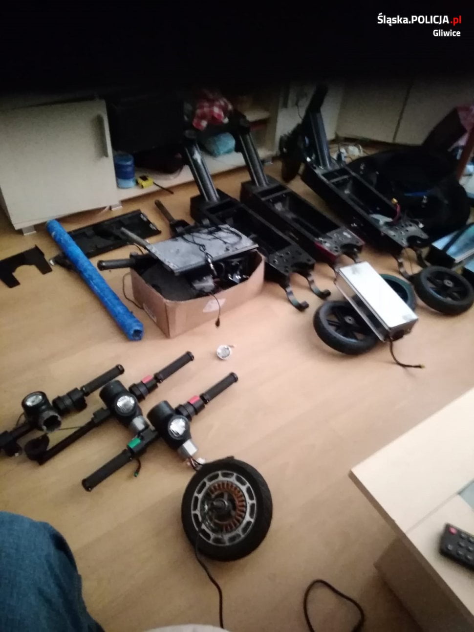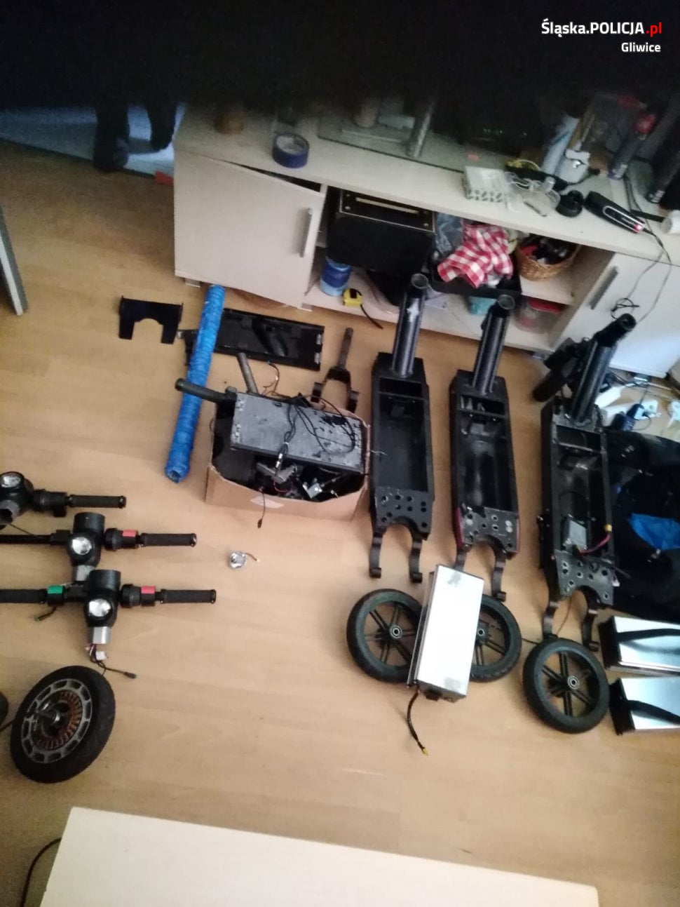 Odmawiający zeznań mężczyzna, dowiedziawszy się, że śledczy znają już jego adres, szybko przyznał się do kradzieży. Zresztą, czynić tego nie musiał, gdyż przeszukanie mieszkania potwierdziło wszelkie podejrzenia: w wynajmowanym lokalu znaleziono części z trzech rozkręconych hulajnóg.