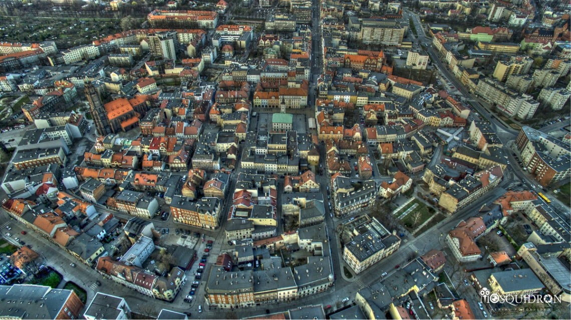 Gliwicka starówka zarejestrowana przez “Mosquidron – Foto i Video z lotu komara”. Marzec 2016.