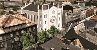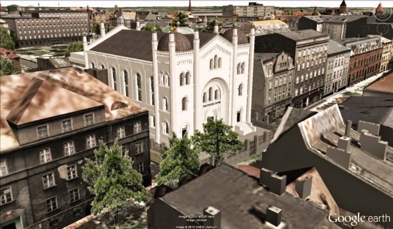 Duże wrażenie robi wizualizacja przedstawiająca dawną synagogę. Zdjęcie pokazuje, jak dzisiaj wyglądałby budynek w otoczeniu miejskim, gdyby nie tragiczny pożar z 1938 roku. Więcej prac Wojciecha Zdanowicza można znaleźć na stronie internetowej: 3dgliwice-zdanwoj.blogspot.com