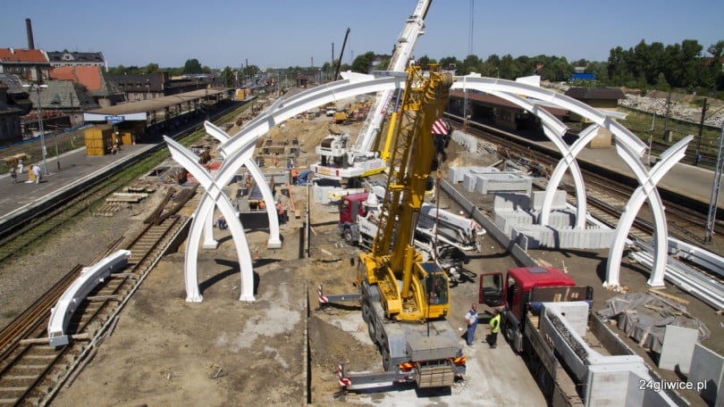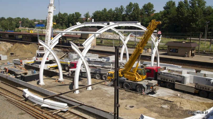 Na gliwickim dworcu rozpoczął się montaż konstrukcji hali peronowej.