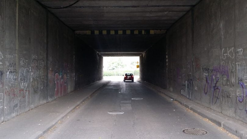 W tunelu pod wiaduktem kolejowym, łączącym ulice Przemysłową i Kasztanową z ulicą Nad Torami, po zmroku panują kompletne ciemności. Brak oświetlenia sprawia, że nie jest tam bezpiecznie. Żadna instytucja nie kwapi się jednak do zamontowania w tym miejscu lamp.