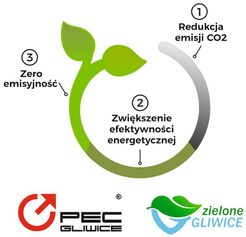 PEC-Gliwice Sp. z o.o. jako Spółka miejska jest motorem napędowym i ambasadorem transformacji energetycznej w Gliwicach. Odpowiada bezpośrednio za realizowanie kolejnych kroków dekarbonizacji produkcji i dystrybucji ciepła, czego efektem będzie odejście od węgla przy produkcji ciepła i związana z tym głęboka redukcja emisji CO2 do atmosfery.
