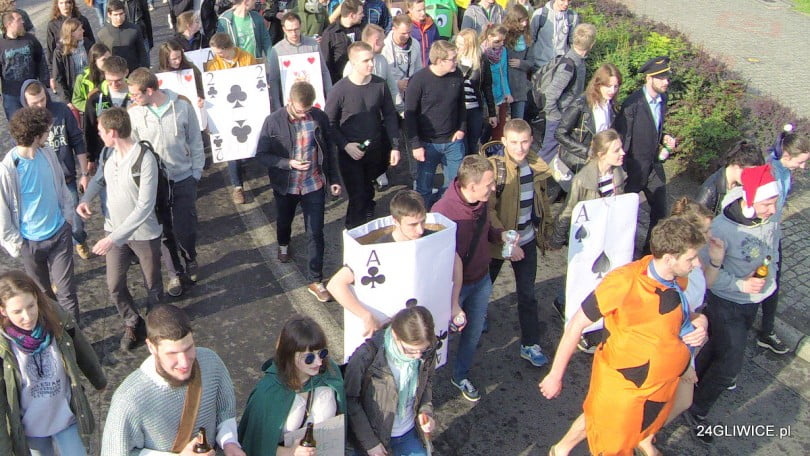 Udało się jednak i tym razem. Korowód przebierańców wystartował z gliwickiego Rynku po godzinie 17.00, dalej przeszedł ulicą Matejki, Dworcową i Dunikowskiego. Pomysłowe przebrania, świetna zabawa i przede wszystkim dobre humory. Dzisiaj miasto należy do studentów.