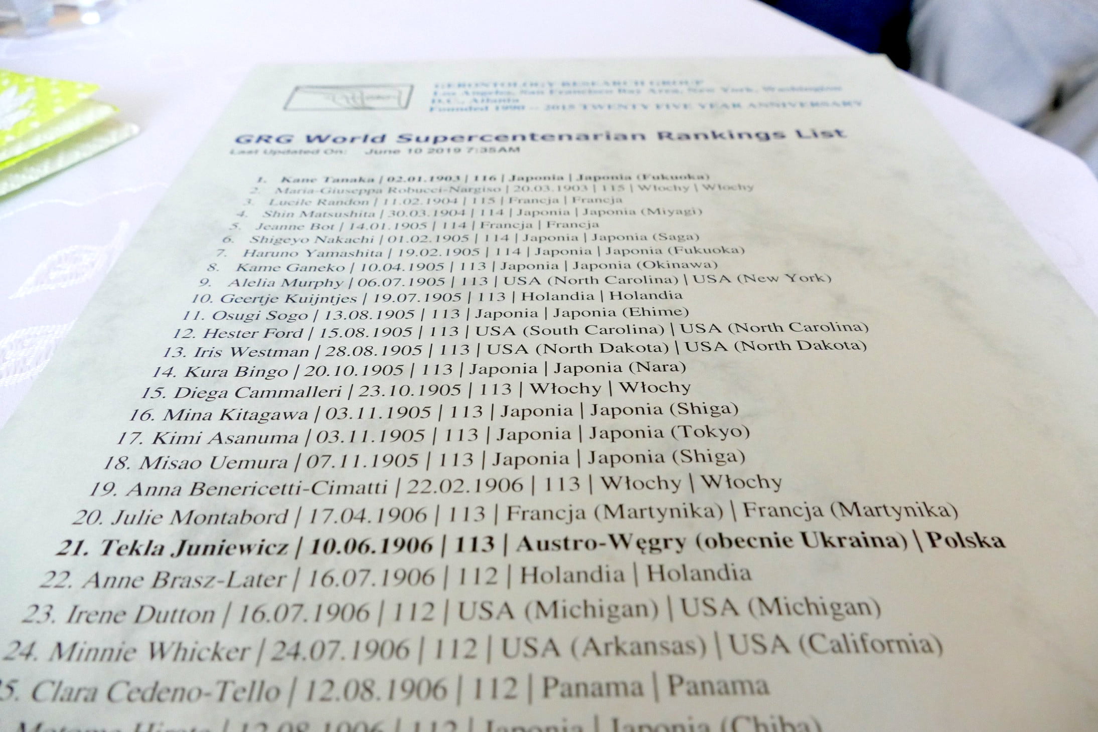 Pani Tekla Juniewicz jest nie tylko najstarszą mieszkanką Polski, ale jest też siódmą w Europie i dwudziestą pierwszą na świecie wśród najdłużej żyjących.