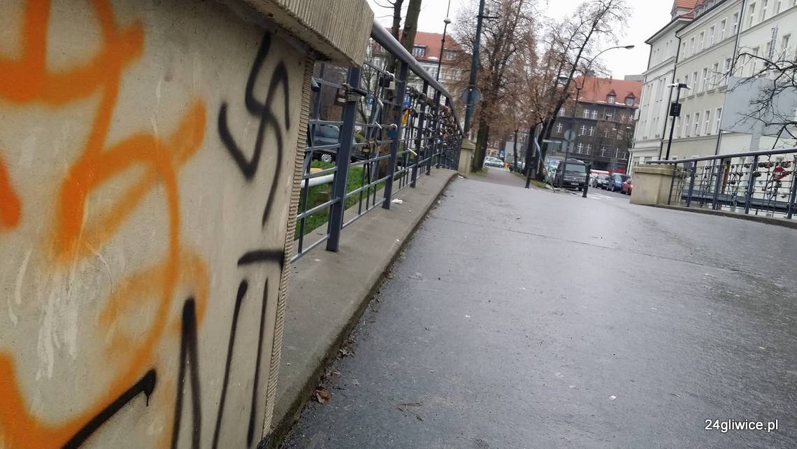 Ktoś popisał farbą w sprayu murki na tzw. Mostku miłości w ciągu ulicy Leona Berbeckiego. Miejsce znajduje się w zasięgu monitoringu miejskiego.