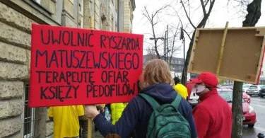 Protest “ofiar pedofilii kleru” w Gliwicach. Demonstranci...