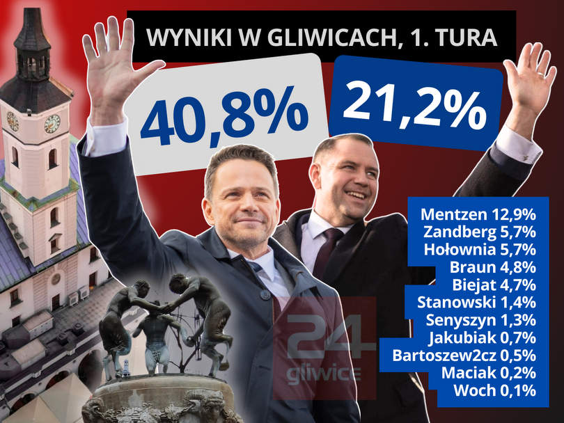 W Zabrzu Trzaskowski 35,4%, Nawrocki 24,1%.