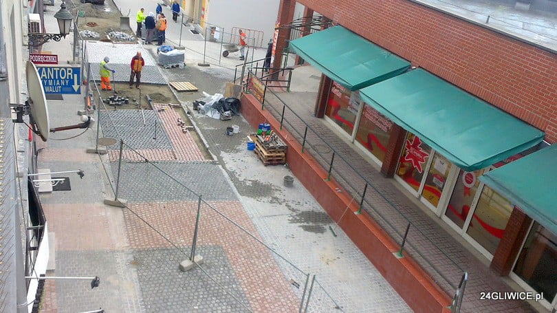Trwa układanie kostki brukowej na ulicy Basztowej, w miejscu, gdzie podczas prac związanych z przebudową ulic Starówki, odkopano fundamenty średniowiecznej Białej Bramy.