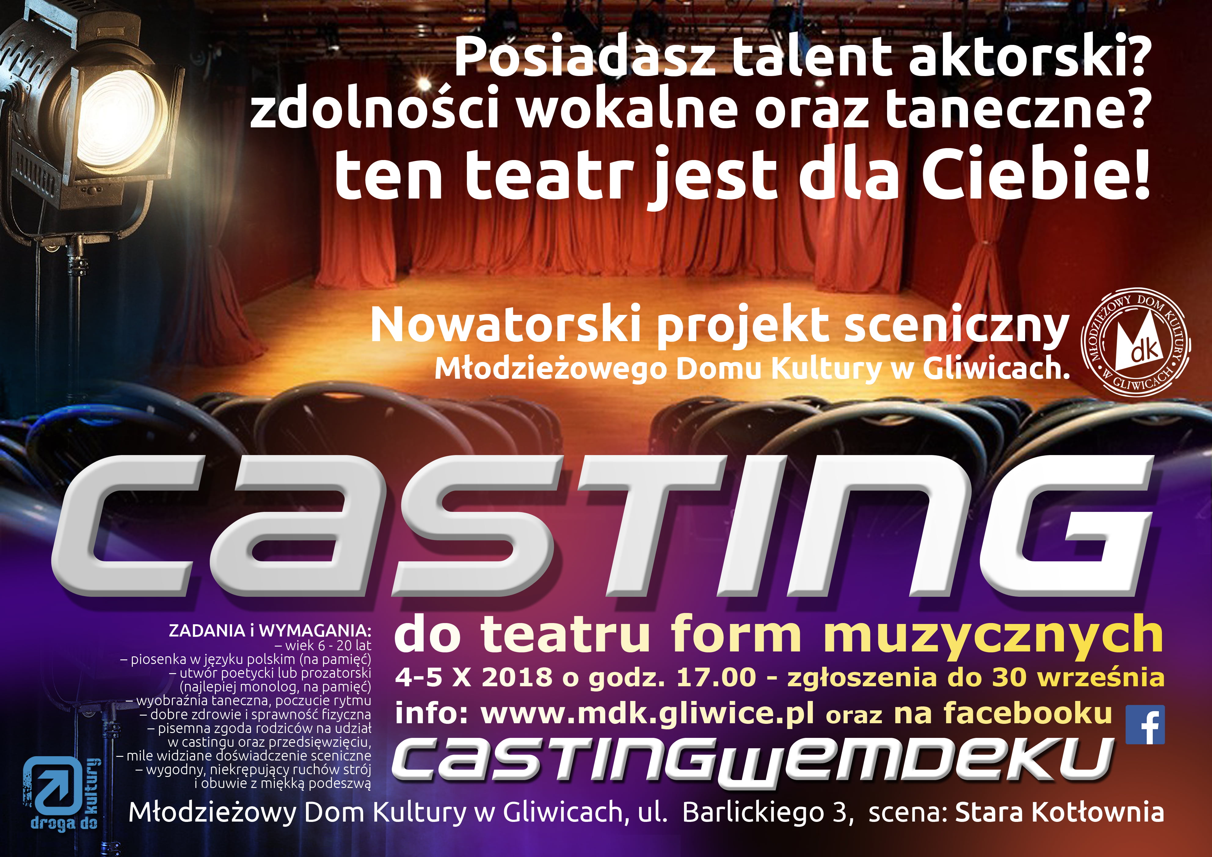 Młodzieżowy Dom Kultury w Gliwicach szuka młodych aktorów, tancerzy i wokalistów do nowo powstającego koła Teatru Form Muzycznych CASTING.