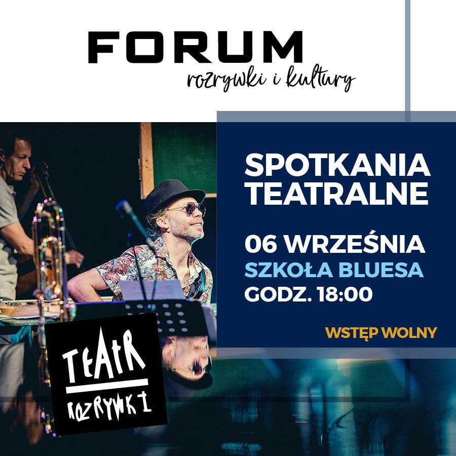 W piątek (6 września, godzina 18:00) na scenie „Szkoła bluesa” – spektakl zrealizowany w ramach Sceny Inicjatyw Artystycznych „Po godzinach”. Szkoła bluesa to muzyczny miraż spektaklu z historią polskiego bluesa w tle.