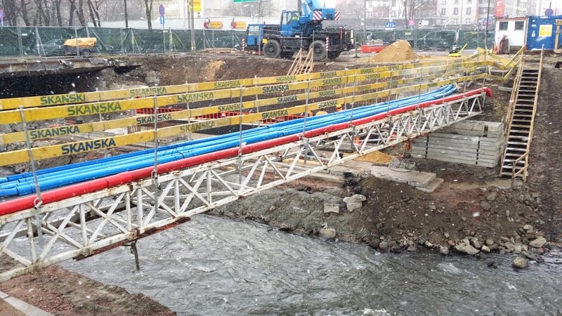 – Przełożono całą infrastrukturę, głównie kable teletechniczne i kable energetyczne. Wyburzono przęsło i przyczółki obiektu. Poza tym umocniono koryto rzeki i przygotowano podbudowę pod rusztowania, aby wybudować przęsło – informuje Zarząd Dróg Miejskich.