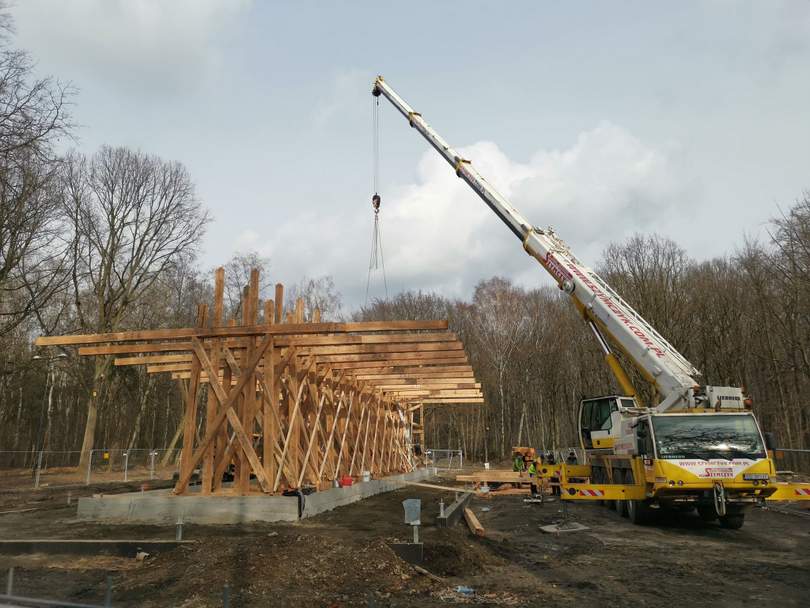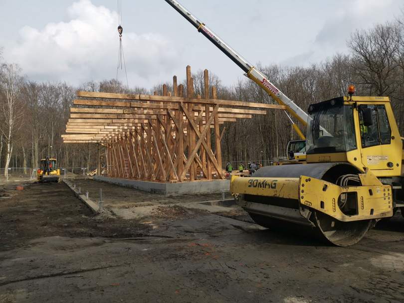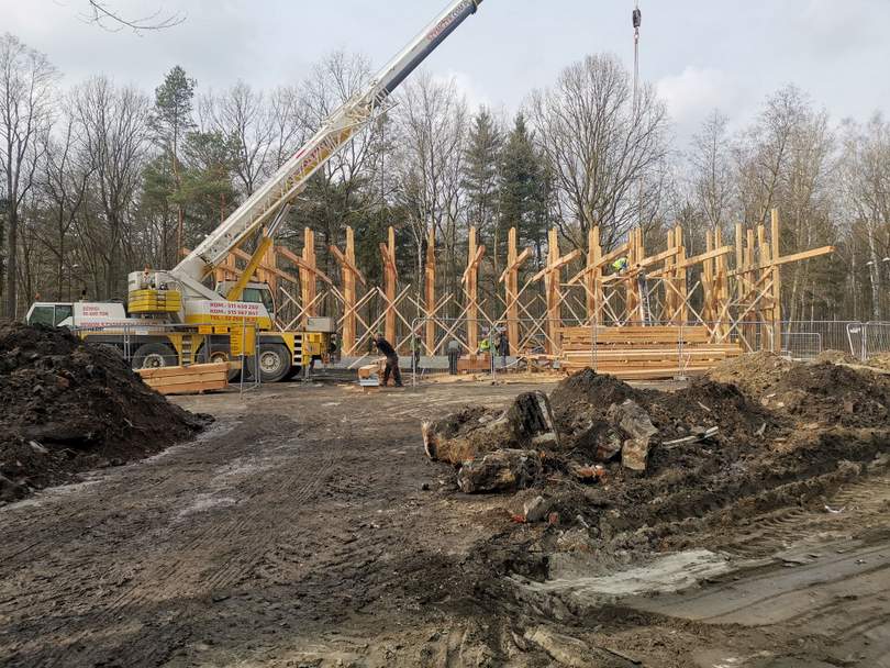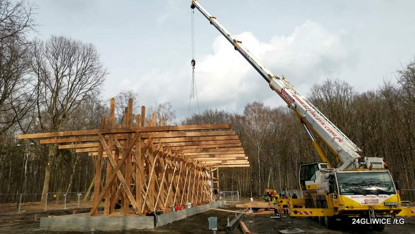 Trwa montaż drewnianej konstrukcji. Jeśli wszystko pójdzie zgodnie z planem, z inhalacji będzie można skorzystać już w czerwcu.