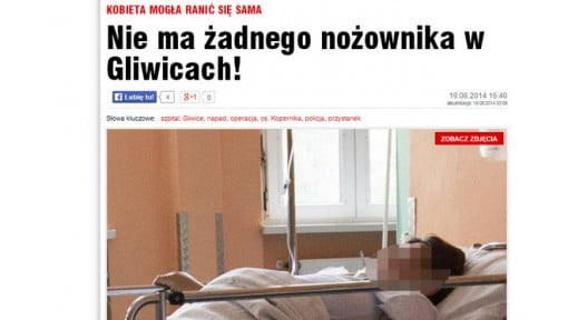 Gazeta twierdziła, że w zeszłym tygodniu na osiedlu Kopernika nie doszło do ataku nożownika na starszą kobietę, a ofiara zraniła się sama.