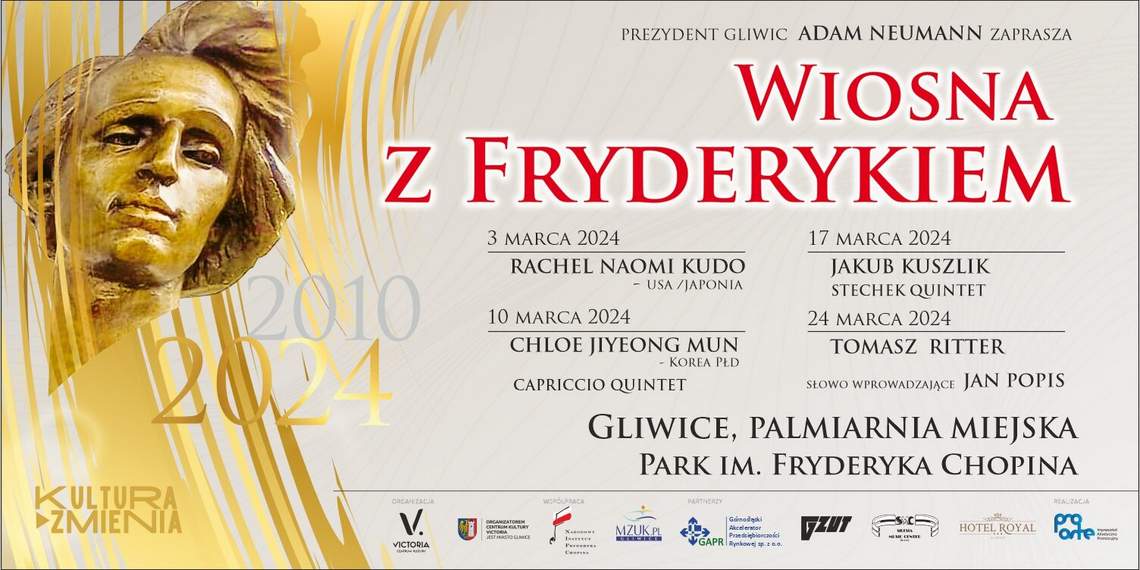 – Klucz doboru co roku jest ten sam – do Gliwic zapraszani są laureaci najbardziej prestiżowych konkursów pianistycznych, w tym Międzynarodowego Konkursu im. Fryderyka Chopina w Warszawie. „Wiosna z Fryderykiem” to już marka uznawana za wartościową także poza granicami miasta. Od 2015 roku cykl prezentowany jest w Sali Lustrzanej Zamku w Pszczynie. Wydarzeniem zainteresował się również Teatr im. Adama Mickiewicza w Cieszynie. – mówi Paweł Ciepliński, dyrektor Centrum Kultury Victoria w Gliwicach.