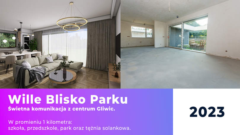 Wille blisko parku to nie tylko domy, lecz styl życia. Maksimum prywatności we własnym ogrodzie, bliskość centrum miasta, otaczająca przyroda oraz innowacyjne podejście do architektury sprawiają, że to idealne miejsce dla tych, którzy pragną mieszkać komfortowo, a jednocześnie blisko natury. Już teraz możesz wybrać swój wymarzony dom i zacząć nowy etap życia na nowym, prestiżowym osiedlu w Gliwicach.