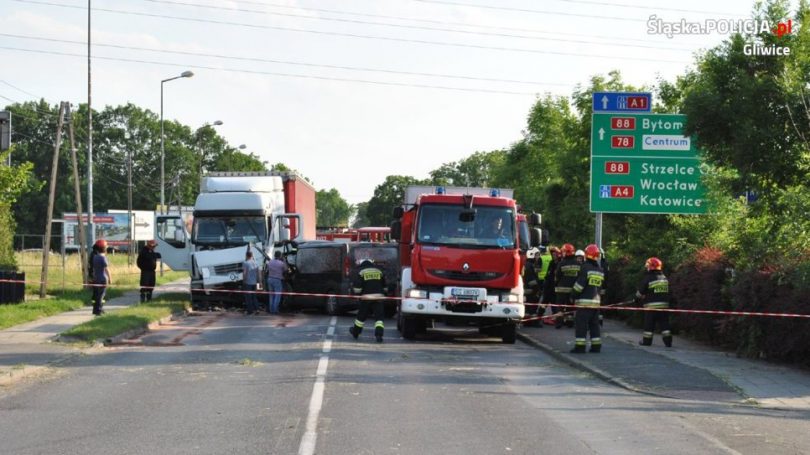 – Wstępne ustalenia wskazują, że 43-letni gliwiczanin kierujący Renault Traffic z nieustalonych przyczyn zjechał na przeciwległy pas ruchu i doprowadził do czołowego zderzenia z prawidłowo jadącym samochodem ciężarowym marki Renault Premium z naczepą, kierowanym przez 29-letniego mieszkańca województwa kujawsko-pomorskiego – informuje nadkomisarz Marek Słomski, oficer prasowy gliwickiej policji.