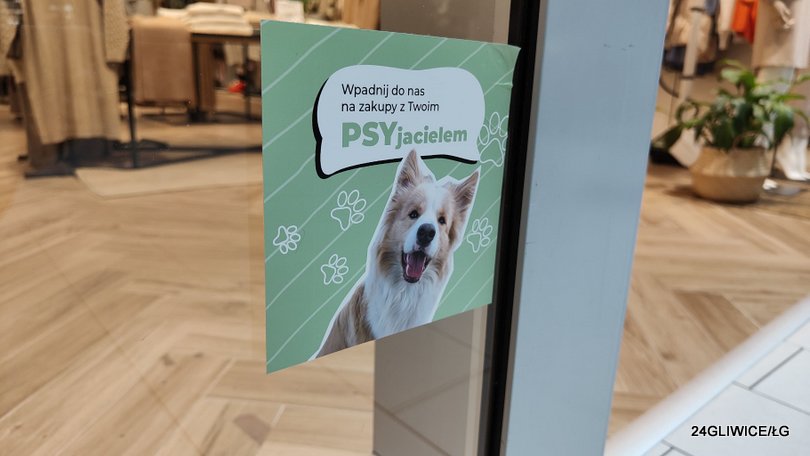 Aby ułatwić swoim klientom zorientowanie się, do których sklepów mogą wejść z pupilami, w obiekcie przygotowano specjalne oznaczenia -naklejki z adekwatną informacją. Zostały umieszczone na witrynach sklepowych w okolicy wejścia.