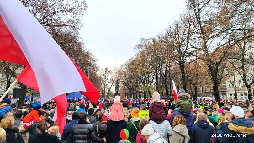 Gliwice świętują. Przemarsz przez centrum miasta, mnóstwo mieszkańców (ROLKA)