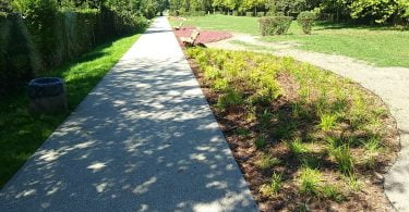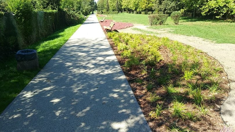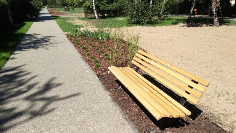 [perfectpullquote align=”full” bordertop=”false” cite=”” link=”” color=”” class=”” size=””]Dopiero za obiektem rozpoczyna się kolejny odcinek “Bulwarów Kłodnicy”. Tam jednak nie ma już nasadzeń przy ławkach.[/perfectpullquote]Przypomnijmy, według zapowiedzi MZUK, na tym terenie docelowo ma pojawić się ponad 1100 roślin, w tym: klony, platany, wiśnie, krzewy, trawy ozdobne i kwiaty. Oprócz tego zamontowane mają być elementy małej architektury parkowej: ławki, kubiki i leżaki parkowe.