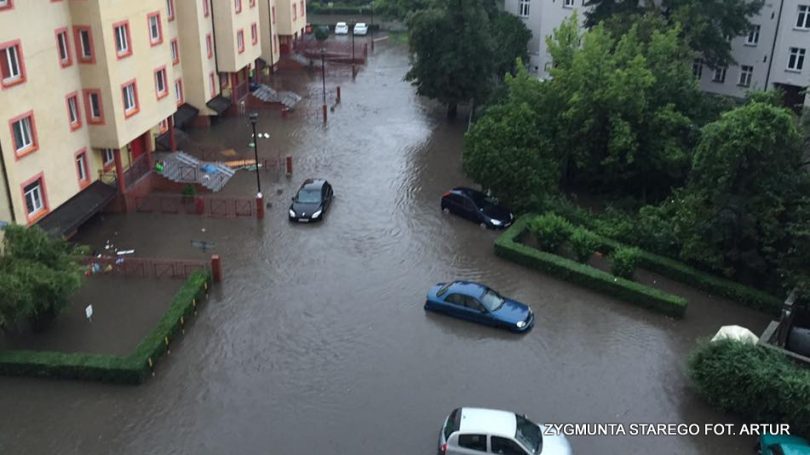 Film: Mieszkańcy ewakuują samochody z zalanej ulicy Zygmunta Starego