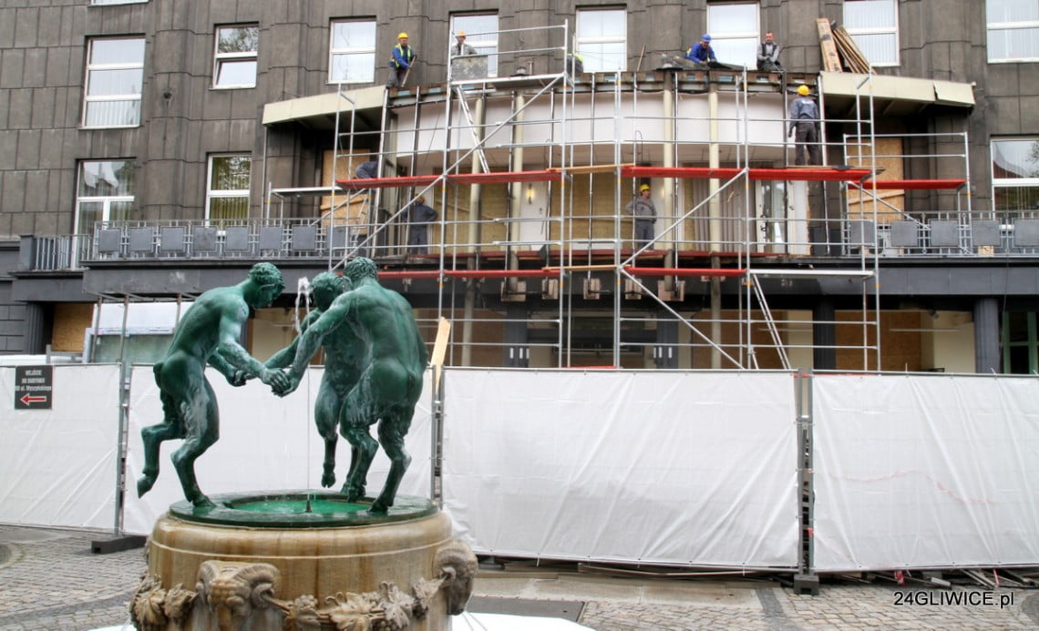 Trwają prace remontowe w budynku Urzędu Miejskiego w Gliwicach. Likwidowana jest m.in. charakterystyczna szklana dobudówka.