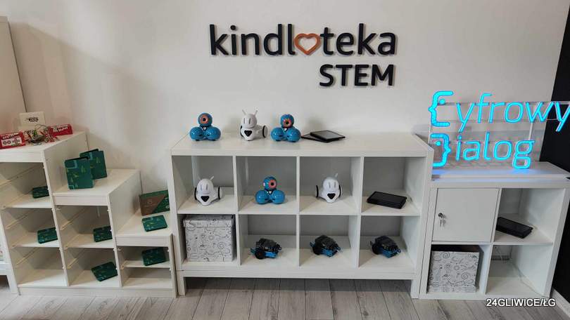 Uroczyste otwarcie Kindloteki w Biblioforum (CH Forum, ul. Lipowa 1), przy udziale dzieci z jednego z gliwickich przedszkoli, było okazją do organizacji pokazowej lekcji STEM, przygotowanej przez trenerki Stowarzyszenia Cyfrowy Dialog. Najmłodsi uczestnicy dowiedzieli się, jak funkcjonują roboty i w jaki sposób zajęcia wspierają kreatywne myślenie, natomiast dorośli mieli okazję poznać metody pracy stosowane w placówkach.