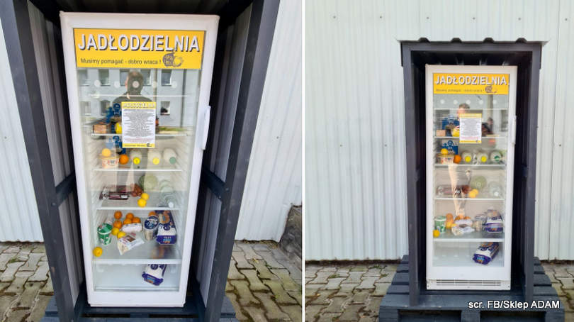 – Czym jest Jadłodzielnia? Jadłodzielnie to specjalnie oznaczone lodówki i szafki, w których można zostawić niepotrzebne jedzenie lub skorzystać z tego, co zostawili inni. Jadłodzielnia jest dla wszystkich. Każdy może śmiało wziąć z niej to, na co ma akurat ochotę i to bezpłatnie – kontynuuje sklep “ADAM” z Łabęd. – Każda Jadłodzielnia to wydzielone miejsce ze społeczną lodówko-szafką, gdzie każdy może się podzielić jedzeniem z każdym. Kto wyprodukował, kupił lub ugotował.